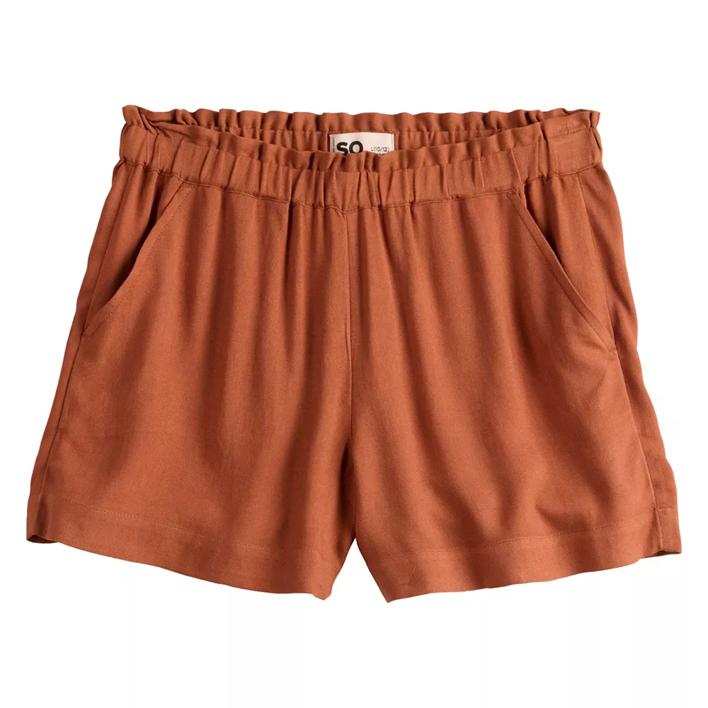 Trendy style and all-day comfort abound on these girls’ SO paperbag waist pull-on shorts.