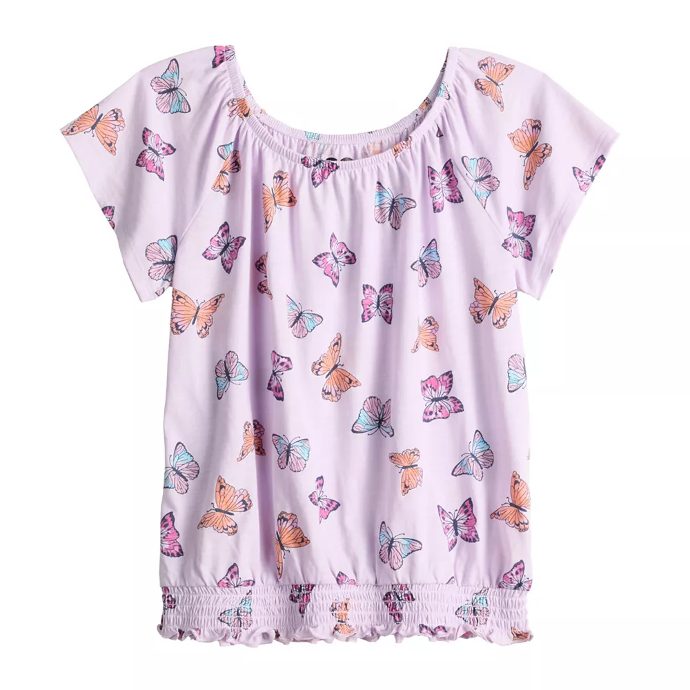 Feminine charm abounds on this girls’ short-sleeved puff top from SO.