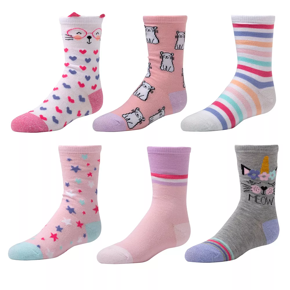 She’ll love the fun prints and patterns on these girls’ SO crew-cut socks.