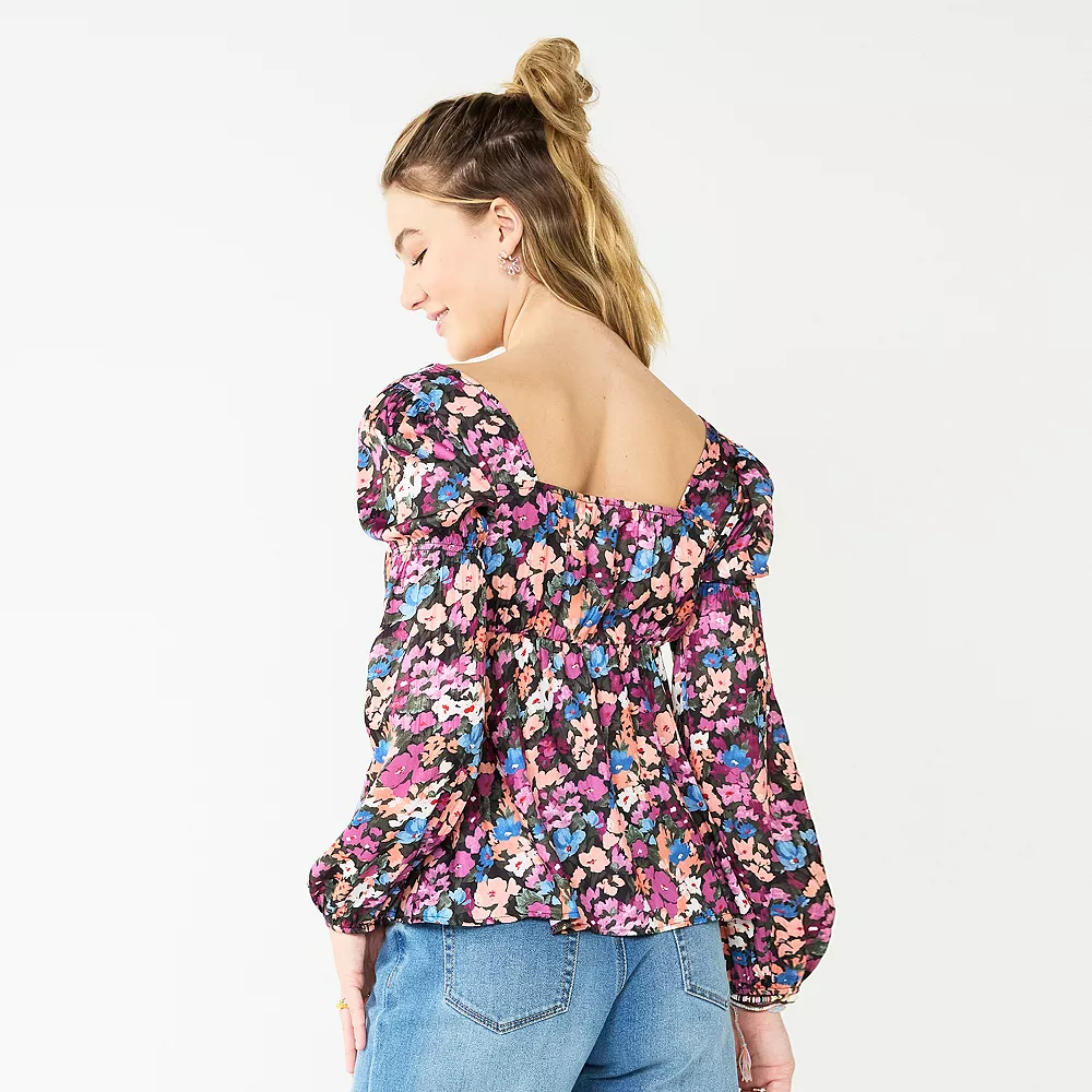 Stay cute and in-style with this juniors’ button-front babydoll top from SO.