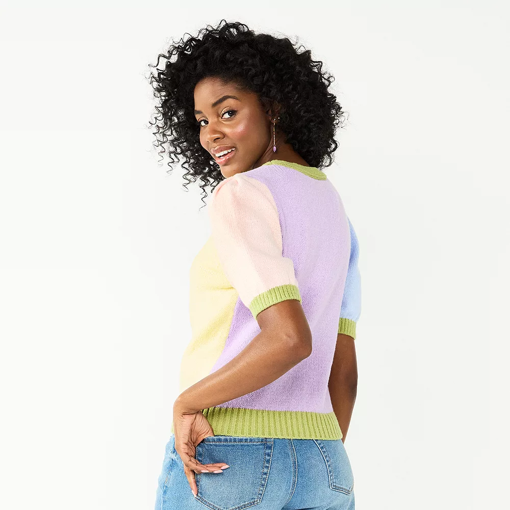 Stay cute and in-style with this juniors’ colorblock cropped cardigan from SO.