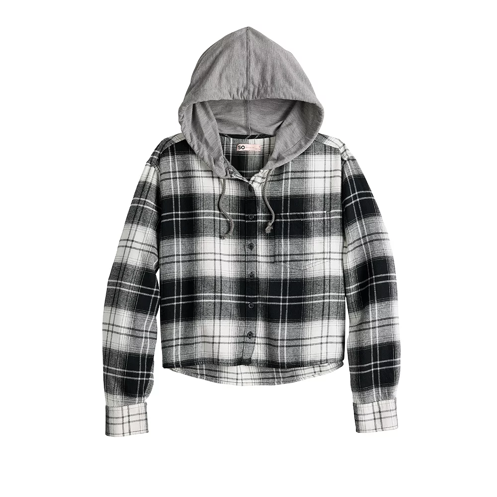 Whether you’re pumpkin picking or snuggling in with a cup of cocoa, fall weather calls for this plaid juniors’ button down top from SO.