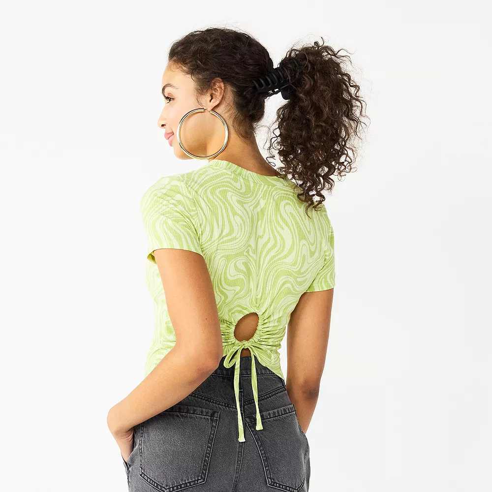 Dress up your casual wardrobe with this ribbed juniors’ cropped tee from SO.