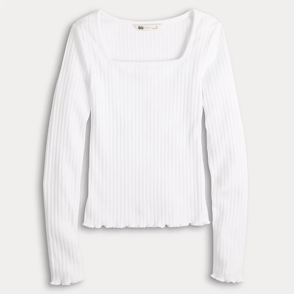 Take your casual wardrobe to the next level with this seamed juniors’ cropped top from SO.