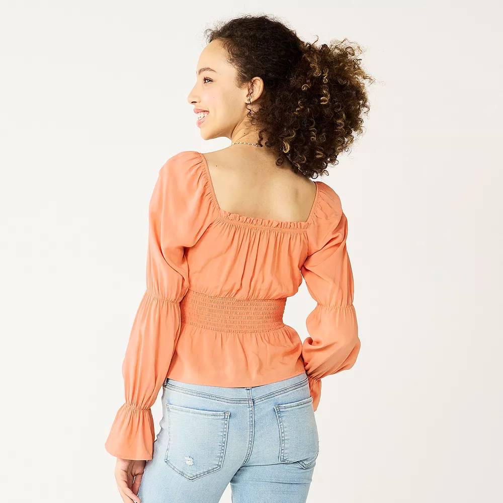 Take the stress out of finding the perfect shirt with this juniors’ cropped smocked top from SO.