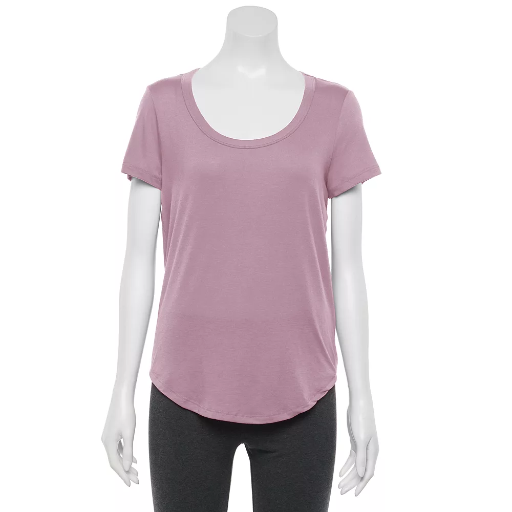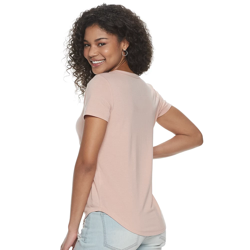 She can dress this Short Sleeve Shirttail U-Neck Tee by SO up or down.