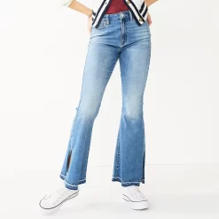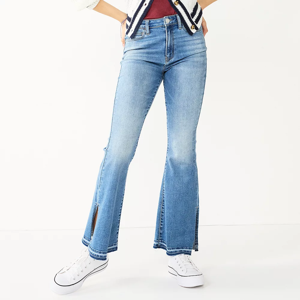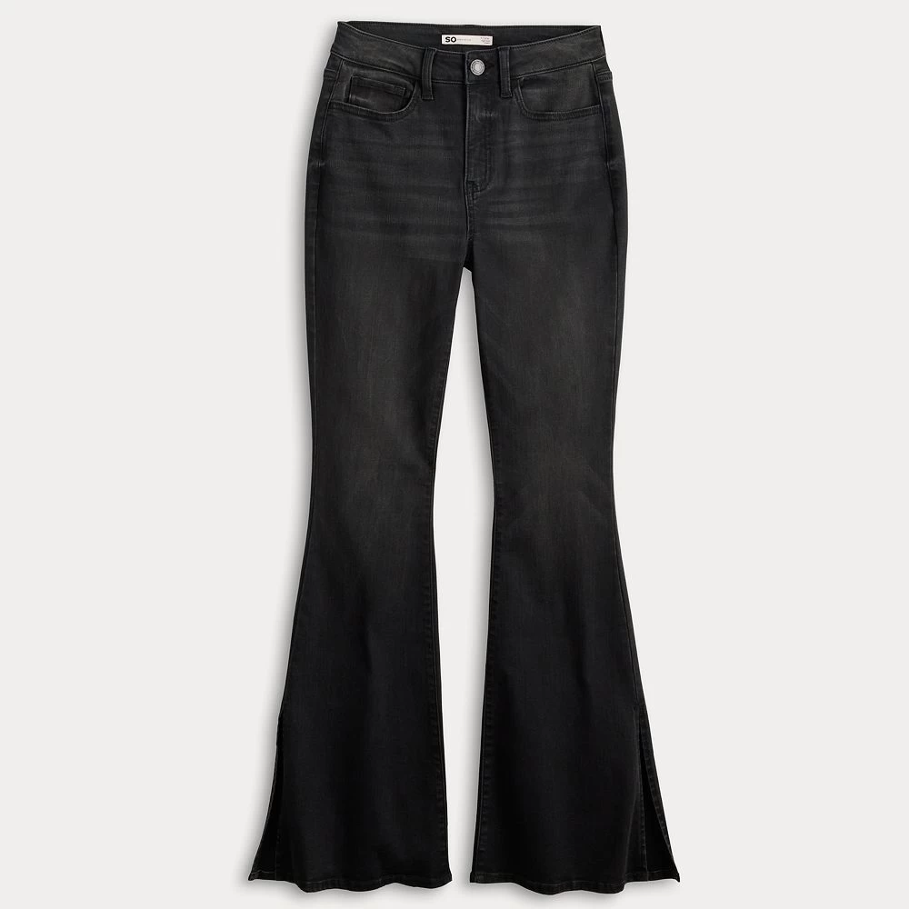 Trendy and stylish, these juniors’ flare jeans from SO have a slit at the hem for an added feminine touch.