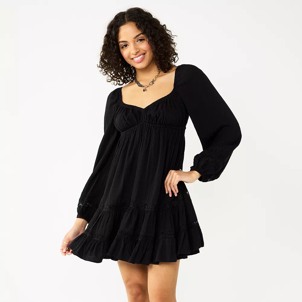 Take the stress out of finding the perfect dress with this juniors’ lace inset skater dress from SO.