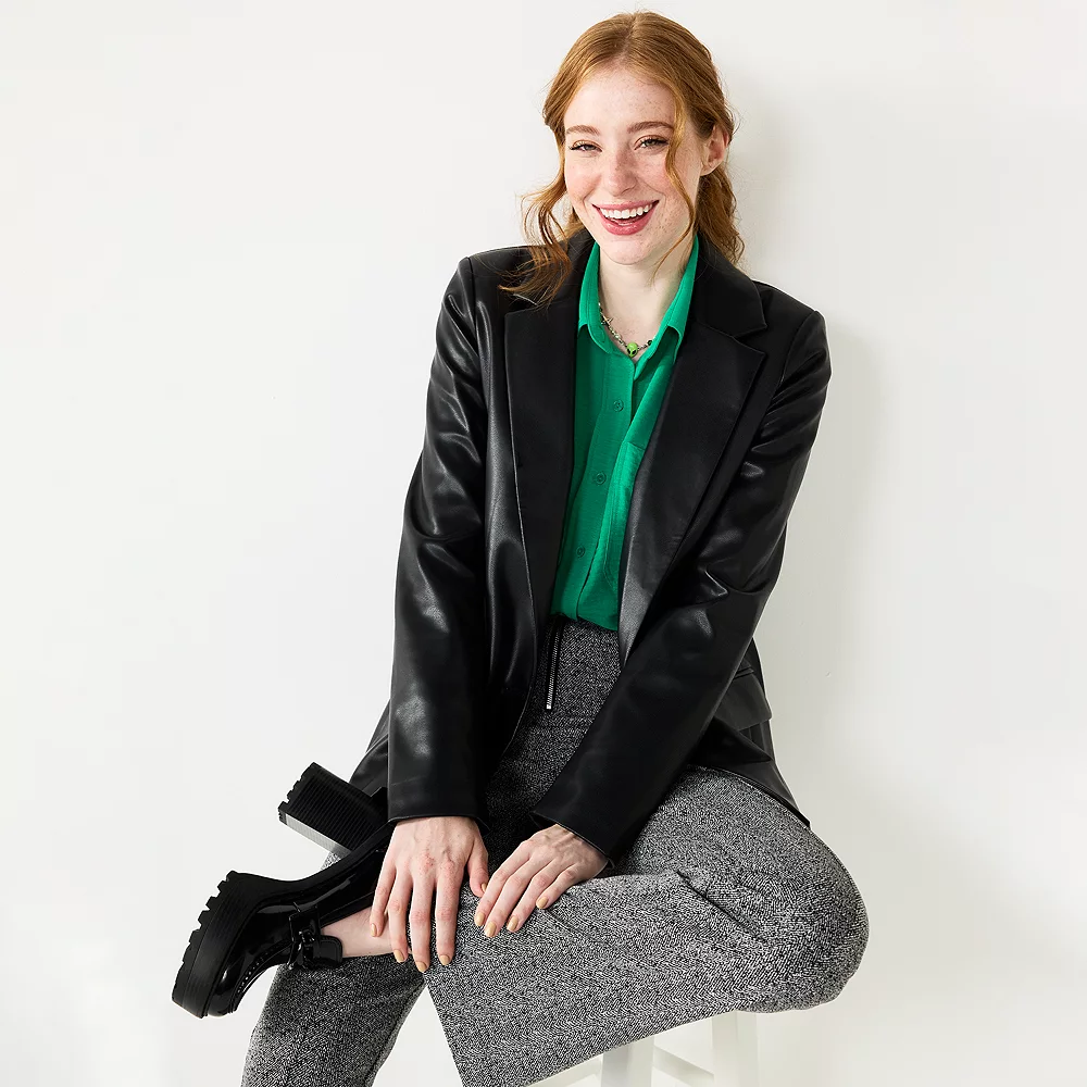 Class up your wardrobe with this cute faux-leather juniors’ blazer from SO!