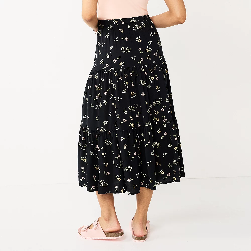 Step up your game with this adorable, flowy juniors’ tiered midi skirt from SO!