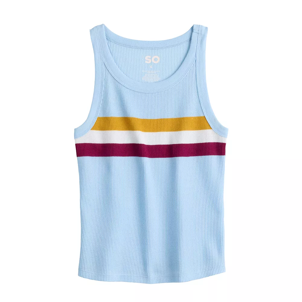 Stylish and cute, this juniors’ tank top by SO combines fashion with comfort.