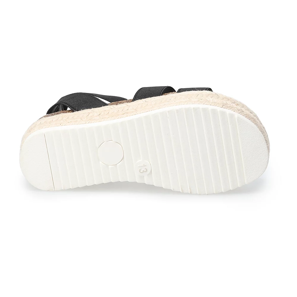 These espadrille-style SO Bonniee kids’ platform sandals will complement any summer outfit.